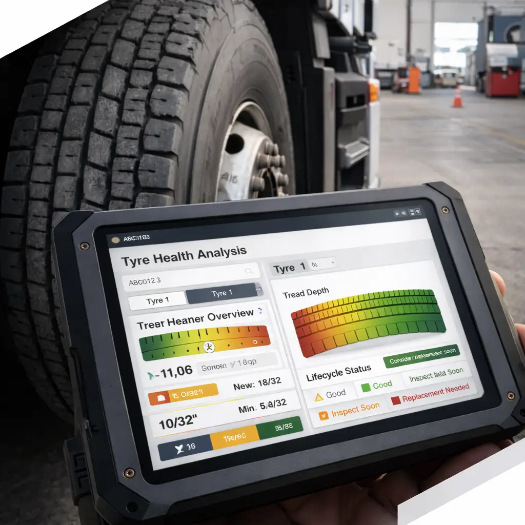 Tyre eXplor is an intelligent tyre management solution designed to continuously monitor tyre health, performance by measuring thread depth, and usage across commercial and industrial fleets. The platform captures real-time tyre data to enable proactive maintenance, improve safety, and reduce lifecycle costs by transforming tyres from consumables into measurable, controllable assets.